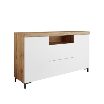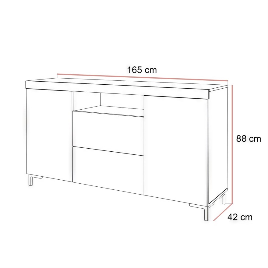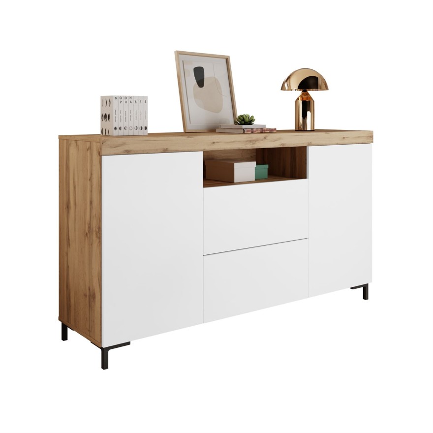 Komoda YOSHI ze względu na mnogość schowków, wyróżnia się niebywałą funkcjonalnością. Mebel posiada dwie pojemne szafki otwierane nowoczesnym systemem push-open, dwie wysuwane szuflady i praktyczną wnękę - rozkład ten pozwala pomieścić i wygodnie przechować najbardziej przydatne rzeczy. Mebel idealnie sprawdzi się zarówno w salonie, jak i jadalni, gdzie stanie się ciekawą ozdobą przykuwającą wzrok. Wystarczy zestawić ją z naszą szafką RTV Yoshi z tej samej kolekcji a z pewnością Twoje mieszkanie stanie się piękniejsze i jednocześnie niezwykle praktyczne.