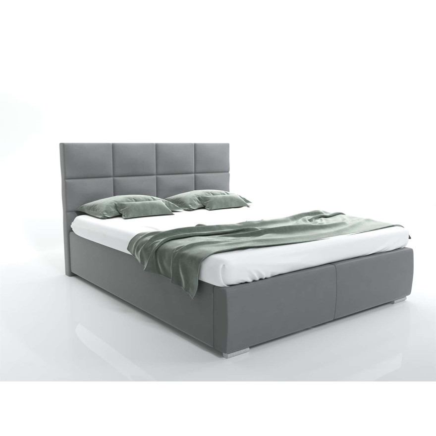 Łóżko kontynentalne, tapicerowane MONA z pojemnikiem na pościel i metalowym stelażem. Niezwykle eleganckie zagłowie doda charakteru Twojej sypialni.
