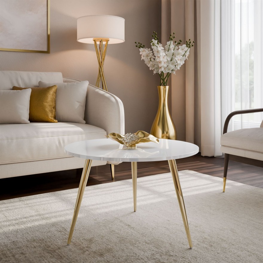 Okrągły stolik kawowy SOLEIL II połysk na złotych nogach