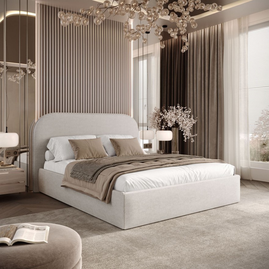 Opływowa sylwetka w zestawieniu z perfekcyjnym wykończeniem sprawia, że mebel dominuje w sypialni w sposób niezwykle łagodny. Przykuwa uwagę harmonijną linią, oferując przy tym najwyższy standard odpoczynku oraz funkcjonalność na co dzień.