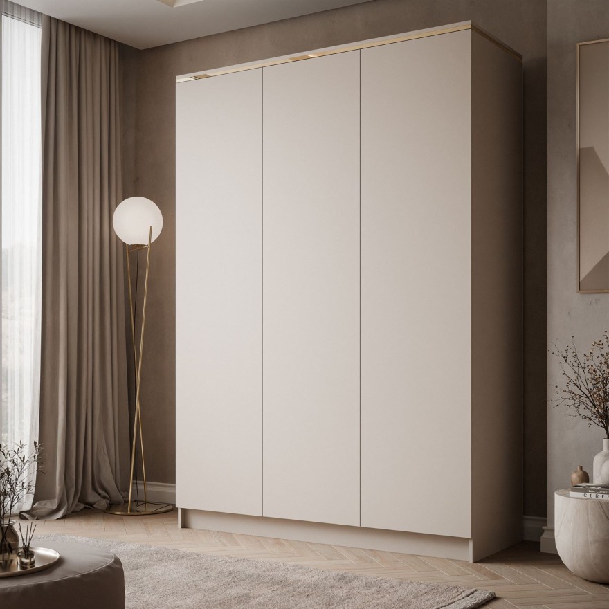 Aurora 3D to elegancka i nowoczesna szafa, która wnosi do wnętrza porządek i styl. Jej kaszmirowe wykończenie i złota listwa dodają wnętrzu ciepła i subtelnej elegancji.