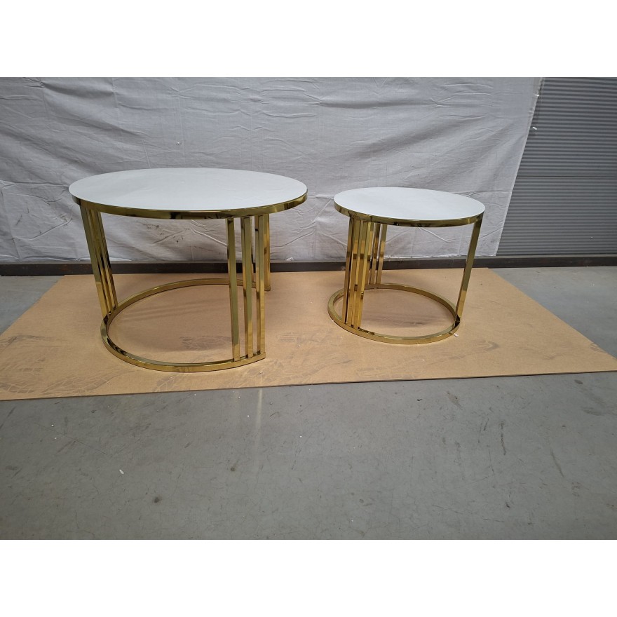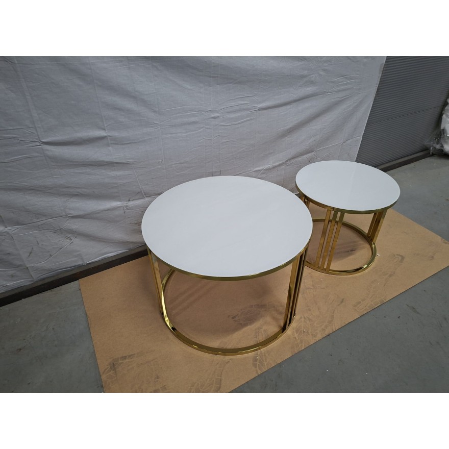 OUTLET Okrągły stolik kawowy 2w1 LORI GLASS złoty chrom