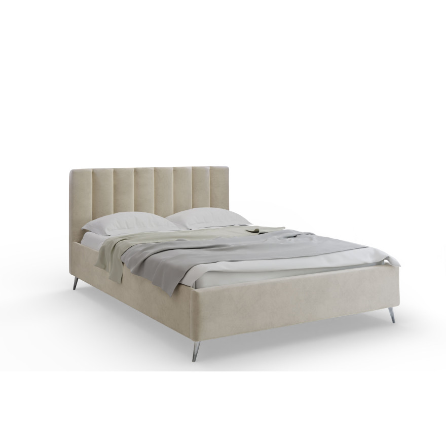 Mebel wyposażony został w stabilną ramę z płyty meblowej. W jej środku umieszczono pojemnik na pościel, nad którym znalazł się metalowy stelaż z drewnianymi listewkami co znacząco zwiększy komfort użytkowania łóżka. Wysokie, smukłe nóżki przyciągają uwagę ciekawym kształtem i zachwycają wysoką stabilnością.