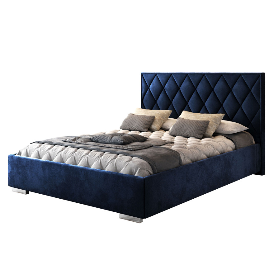 Łóżko tapicerowane AZURRO cechuje się wytrzymałością oraz oryginalnością wzornictwa. Pojemnik na pościel osadzono na mocnej ramie metalowej, dzięki czemu wykorzystasz tę przestrzeń jako wygodny schowek na zapasową kołdrę czy poduszki. Zamontowane siłowniki gazowe pozwolą w łatwy i szybki sposób go unieść, bez zbędnego dźwigania.