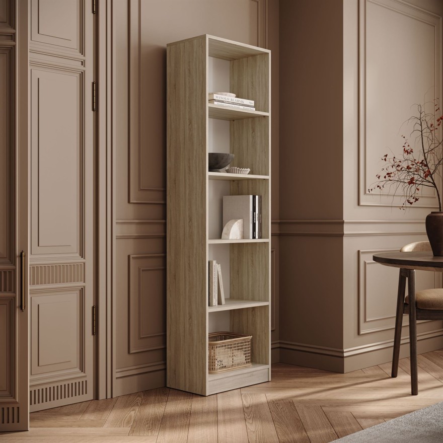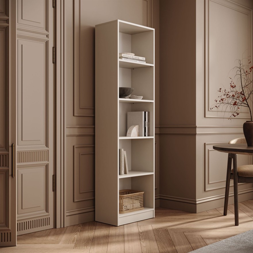 Regał R50 to nowoczesny i minimalistyczny mebel z otwartymi półkami, dostępny w kilku kolorach - łączy praktyczność z elegancką formą, wpasowując się w różnorodne wnętrza.