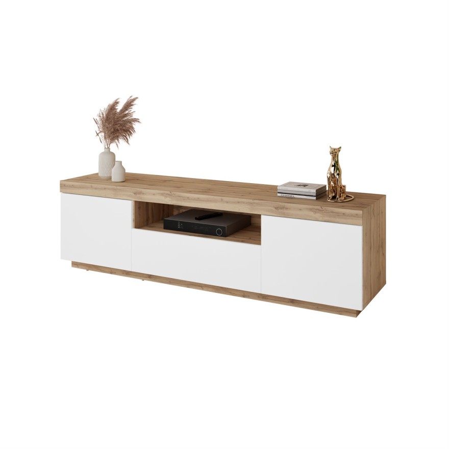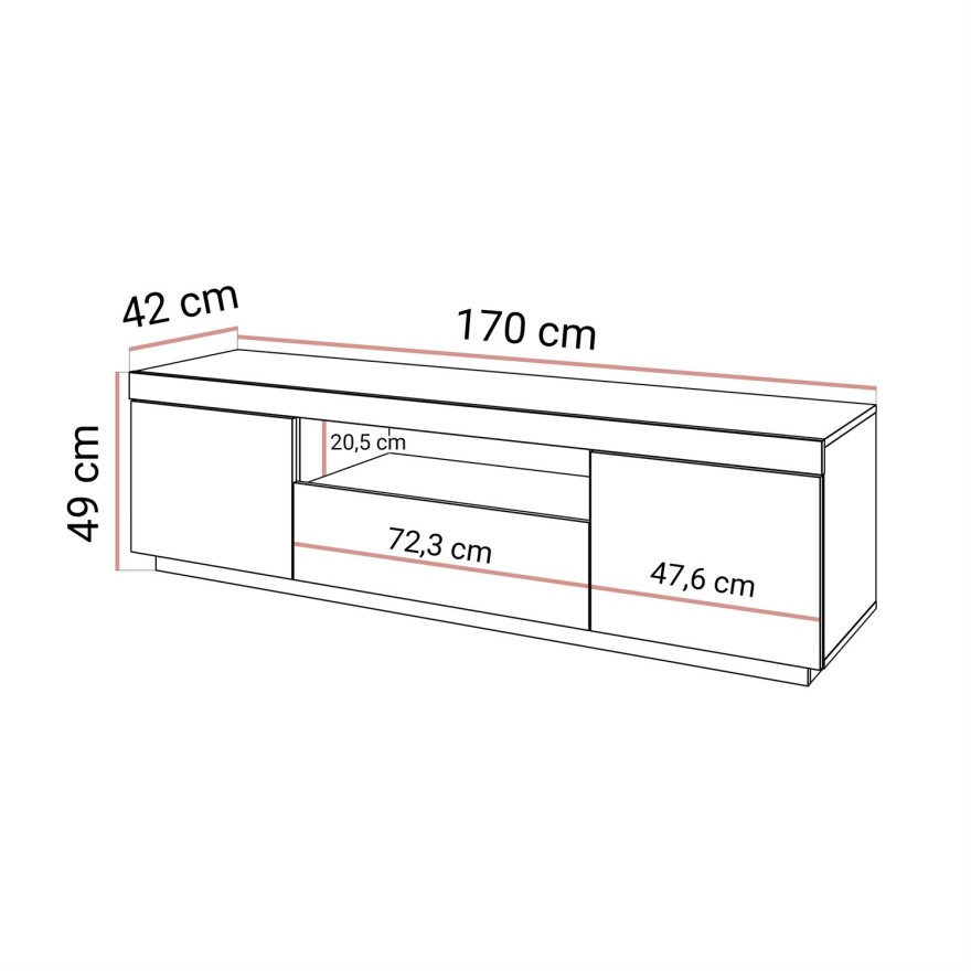 Szafka RTV YOSHI, ze względu na mnogość schowków, wyróżnia się niebywałą funkcjonalnością. Mebel posiada dwie pojemne szafki otwierane nowoczesnym systemem PUSH-OPEN oraz wysuwaną szufladę i praktyczną wnękę - rozkład ten pozwala pomieścić i wygodnie przechować najbardziej przydatne rzeczy.