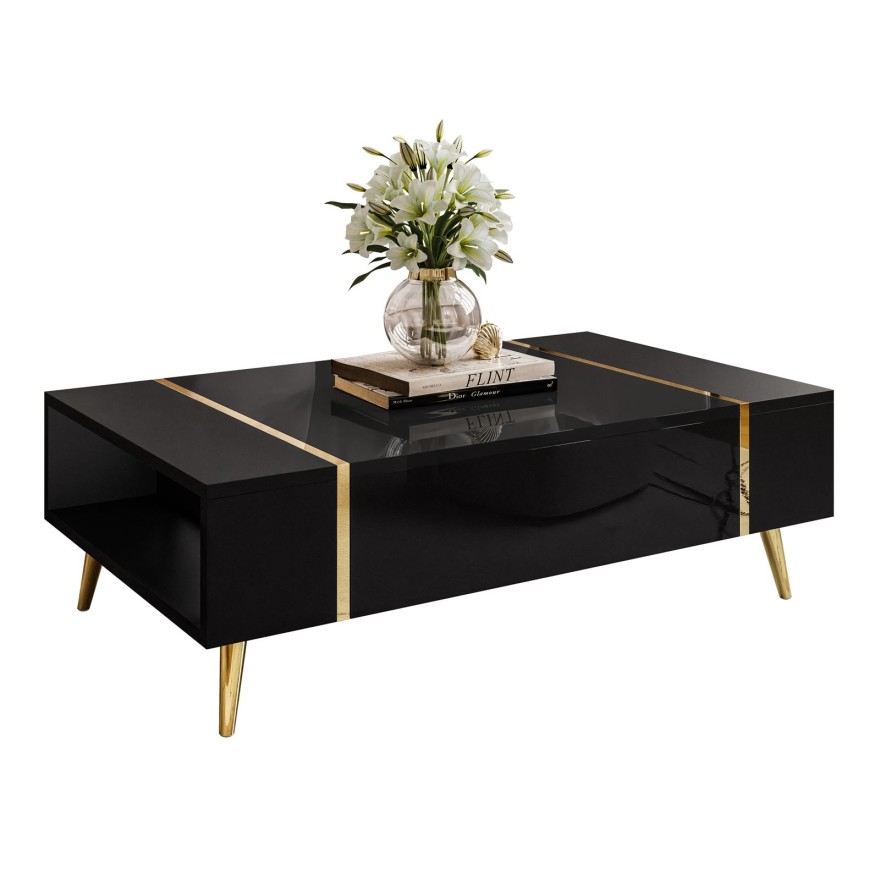 Stolik kawowy ONYX na złotych nóżkach wysoki połysk