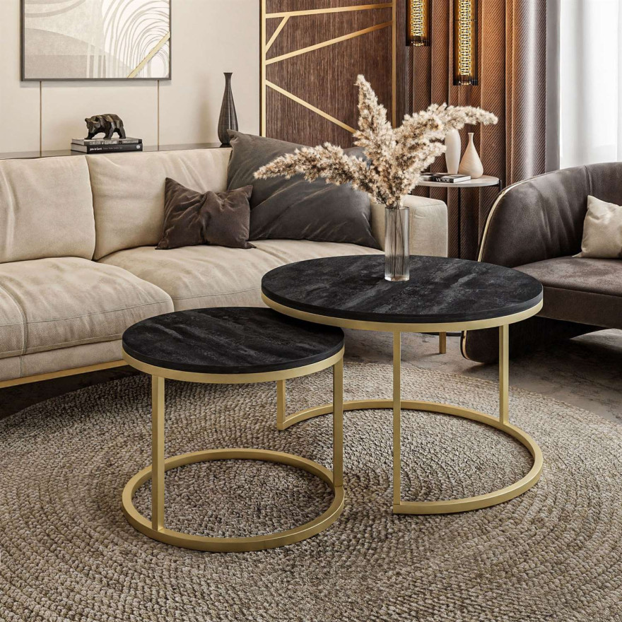 Okrągły stolik kawowy 2w1 CIRI SLIM złoty ciemny beton
