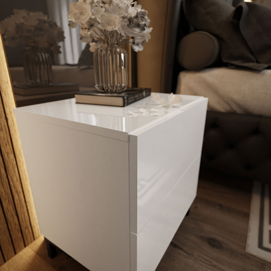 Stolik nocny LINA LUX to stylowy mebel, którego nie może zabraknąć w Twojej sypialni! Wychodząc na przeciw oczekiwaniom naszych klientów, wprowadziliśmy nową odsłonę naszej szafki nocnej. Model został nie tylko wysmuklony, dzięki czemu idealnie sprawdzi się w sypialniach o niewielkim metrażu, ale również został wzbogacony o blat w wysokim połysku, który doda wnętrzu nowoczesności i szyku.