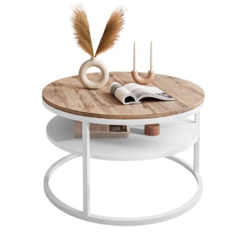 Okrągły stolik kawowy CIRI z półką dąb artisan wotan stirling