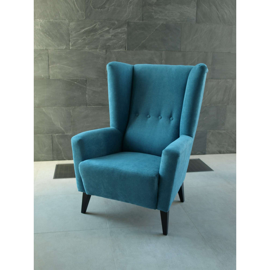 Mebel jest fotelem typu uszak i stanowi niezwykle estetyczny i komfortowy element wyposażenia, salonu, sypialni czy gabinetu. Ze względu na wyprofilowane oparcie w połączeniu z praktycznymi podłokietnikami, z pewnością zapewni maksimum komfortu podczas użytkowania.