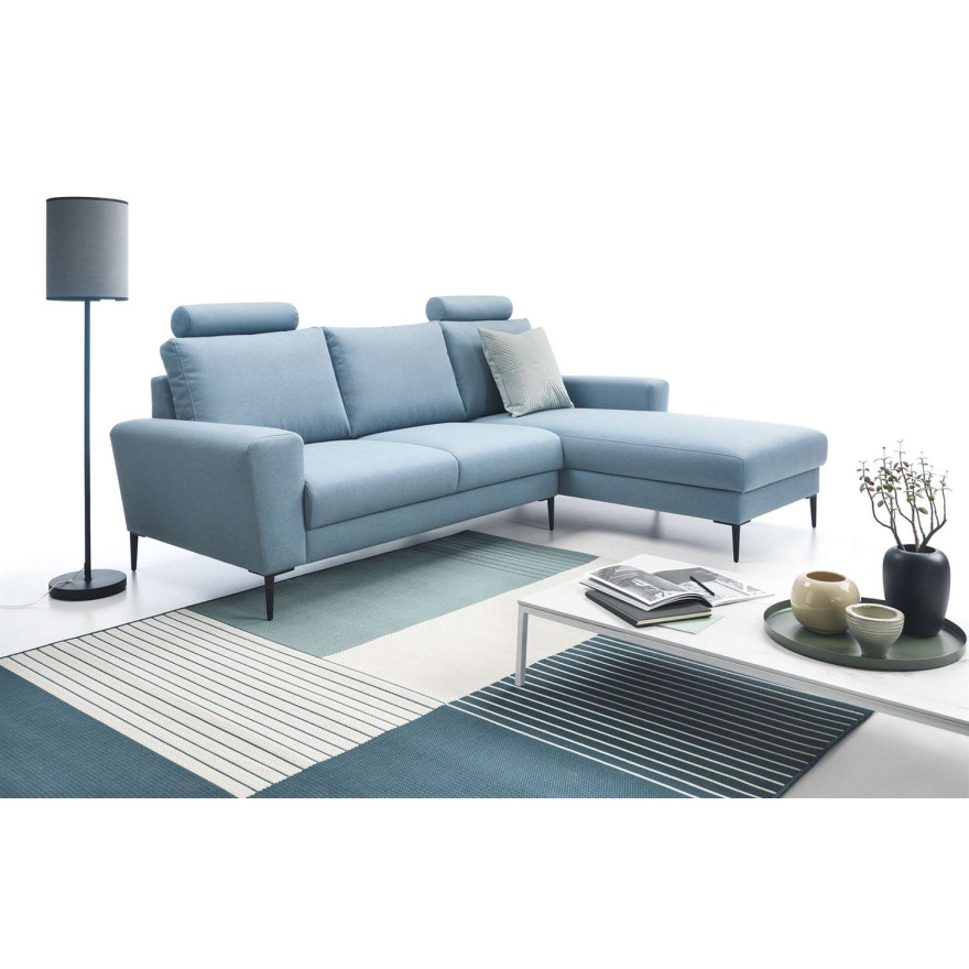 Uroczy i komfortowy narożnik MEZO został stworzony w bardzo modnym stylu, co z pewnością w idealny sposób wypełni Twój salon i nada uroku całemu pomieszczeniu. Jego największą zaletą jest urokliwa i minimalistyczna forma o niebywałej lekkości, a to wszystko dzięki wysokim, zgrabnym nóżkom. Wygodne siedzisko oraz duże poduszki oparciowe pozwolą Ci się zrelaksować i z pewnością umilą niejeden wieczór.