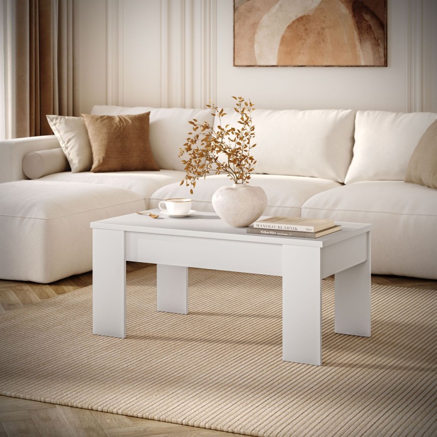 Wielozadaniowy stolik posiada rozkładany blat, dzięki któremu z łatwością dostosujesz go do swoich potrzeb. Wystarczy unieść blat i rozkoszować się kubkiem kawy czy herbaty siedząc wygodnie na sofie. Praktyczna wnęka umieszczona tuż pod blatem znacznie podnosi komfort użytkowania. Pozwala ona na przechowanie różnych ciekawych czasopism, pilotów i innych przedmiotów, które zwykle wprowadzają nieporządek w Twoim domu.