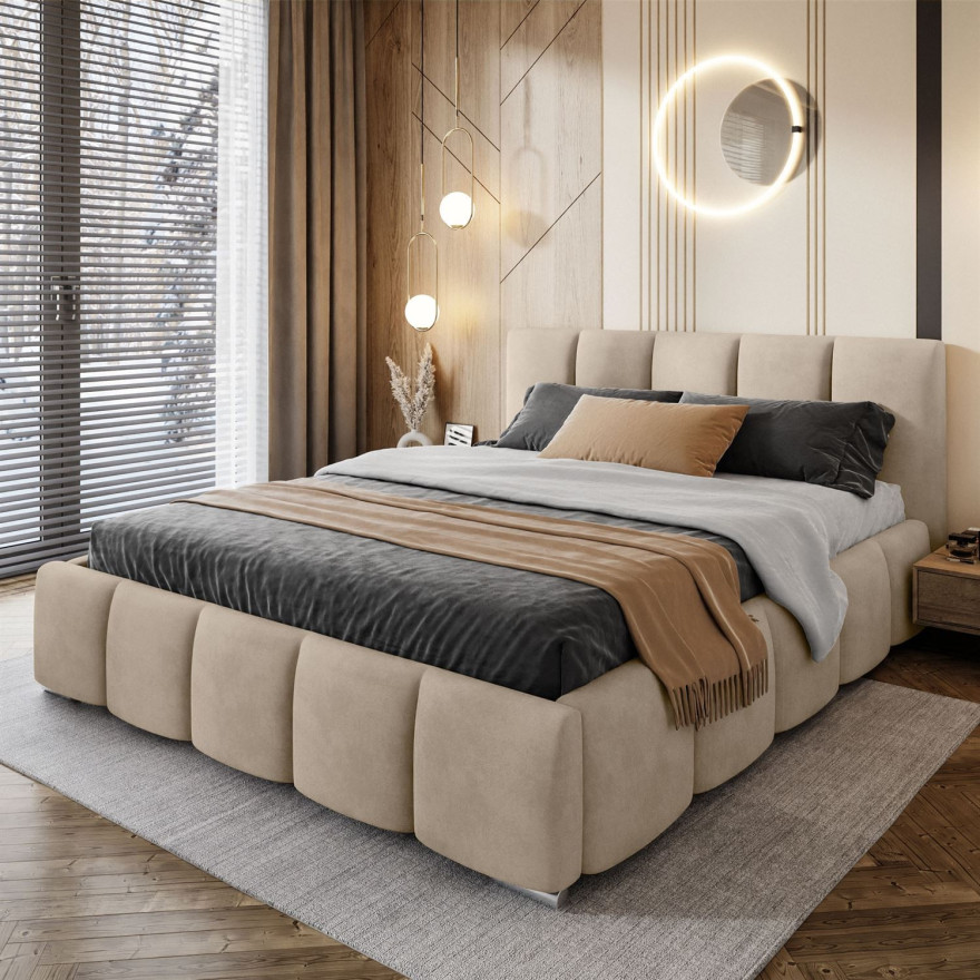 Łóżko wykonane jest z najlepszych materiałów, z dbałością o najmniejsze szczegóły, co zapewnia doskonałe doznania wizualne. Rama oraz zagłówek wypełniony najwyższej jakości pianką, gwarantuje komfortowy sen oraz wypoczynek.
