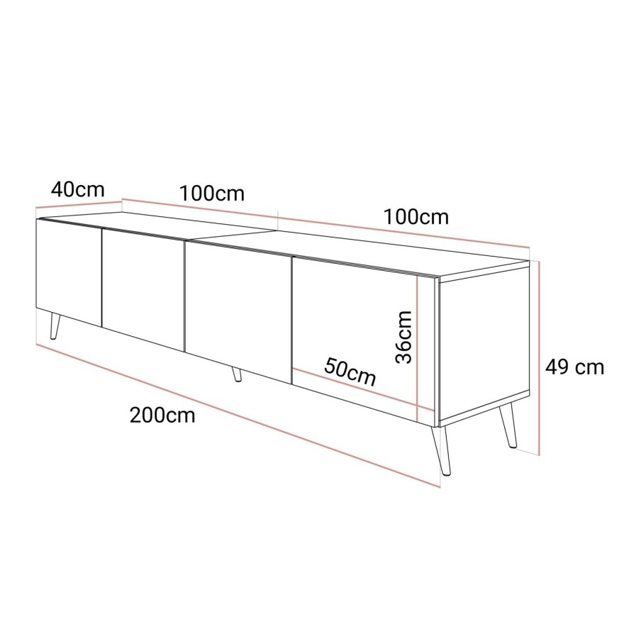 Szafka RTV COLGANTE BETON 200 cm na nóżkach